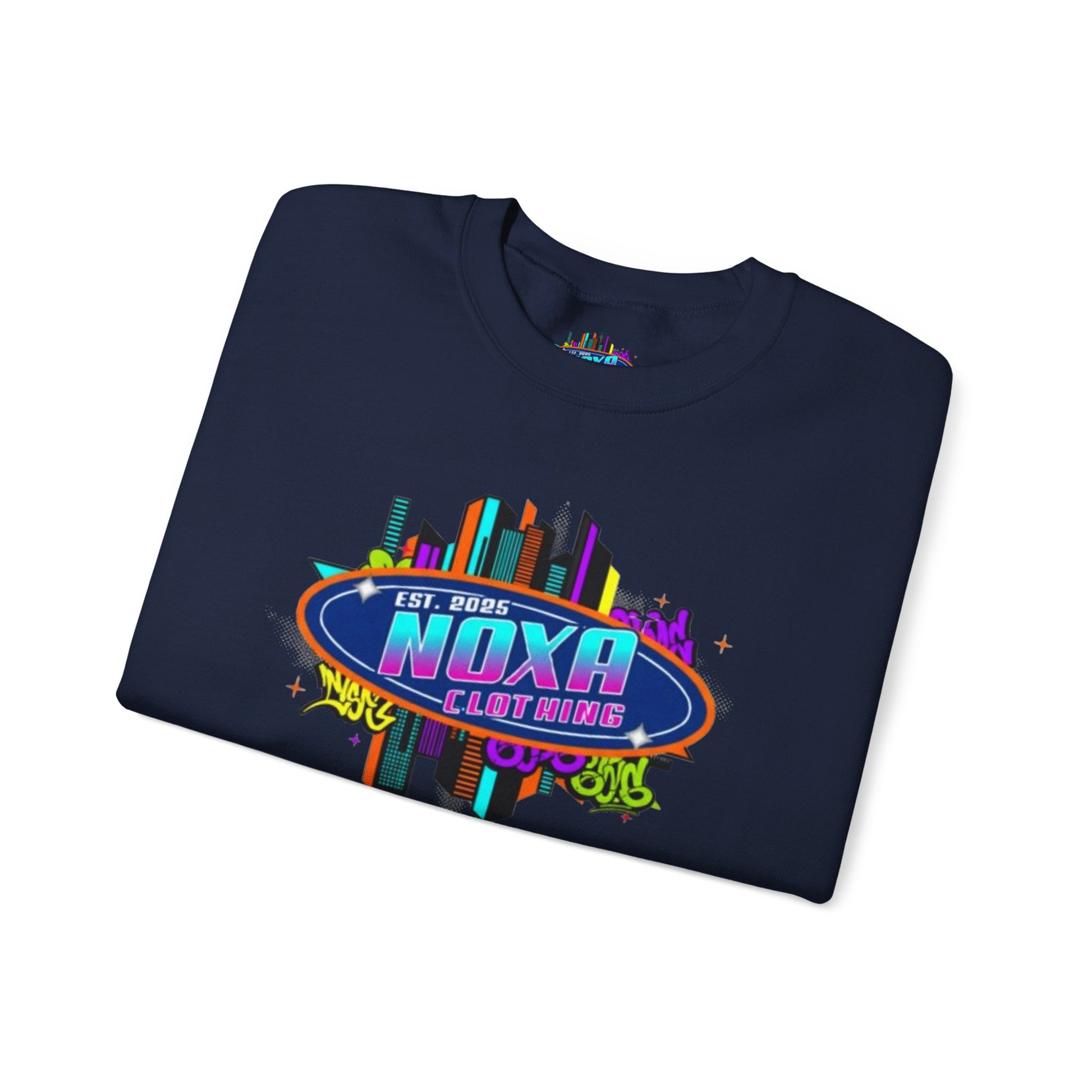 The NOXA design on this sweatshirt gives off a trendy and edgy vibe, perfect for those who love unique and bold fashion statements. It is ideal for adults looking to express their individuality and stand out from the crowd. This sweatshirt is perfect for casual wear during colder months, making it a great addition to anyone's wardrobe. It is relevant for casual wear, streetwear, and alternative fashion enthusiasts.